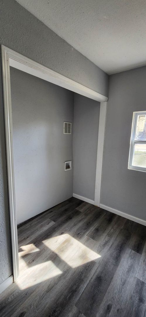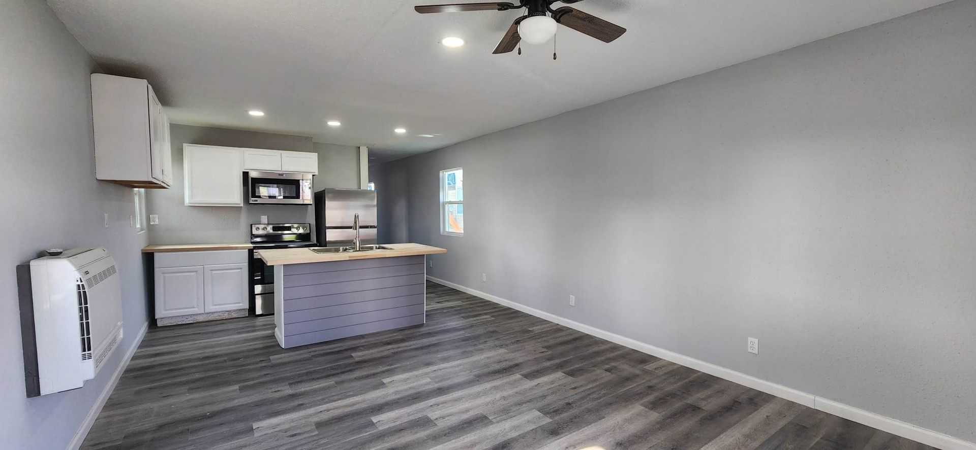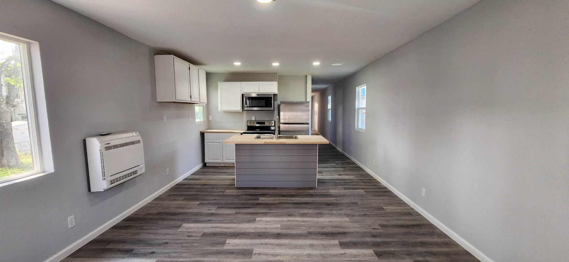 This 3 bedroom 2 bathroom home is newly updated! The entrance is an open floor plan with the living room and kitchen. The kitchen is dressed with appliances, cabinets and has a center island! This unit has 2 spare bedrooms and a master bedroom with a bathroom. One spare bedroom has the laundry room located in the closet area and could be utilized as a large laundry room rather than a bedroom. There is a sliding patio door for side yard access. Pets are welcome upon approval. Parking is located in the back of the unit. Water and trash is included in rent.