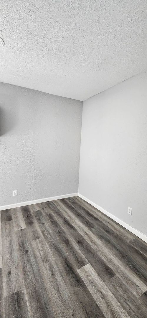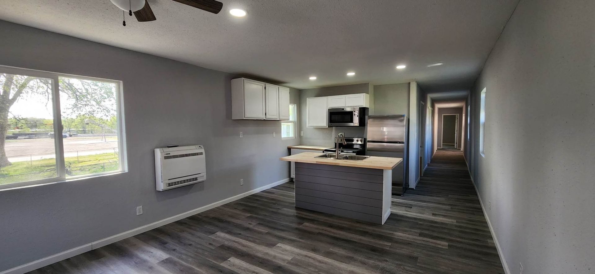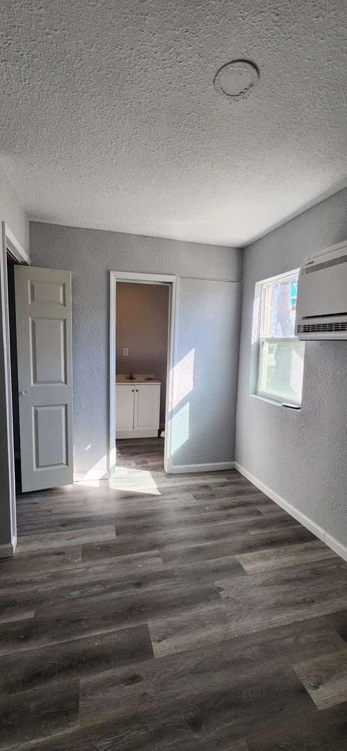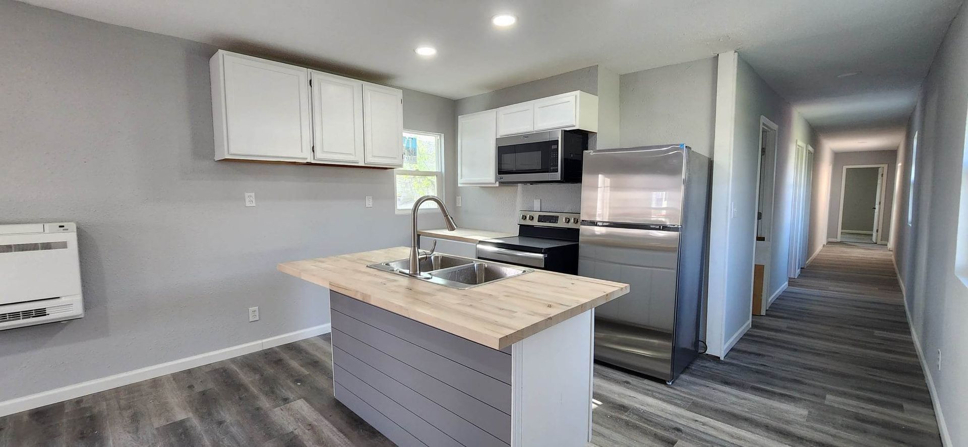 This 3 bedroom 2 bathroom home is newly updated! The entrance is an open floor plan with the living room and kitchen. The kitchen is dressed with appliances, cabinets and has a center island! This unit has 2 spare bedrooms and a master bedroom with a bathroom. One spare bedroom has the laundry room located in the closet area and could be utilized as a large laundry room rather than a bedroom. There is a sliding patio door for side yard access. Pets are welcome upon approval. Parking is located in the back of the unit. Water and trash is included in rent.