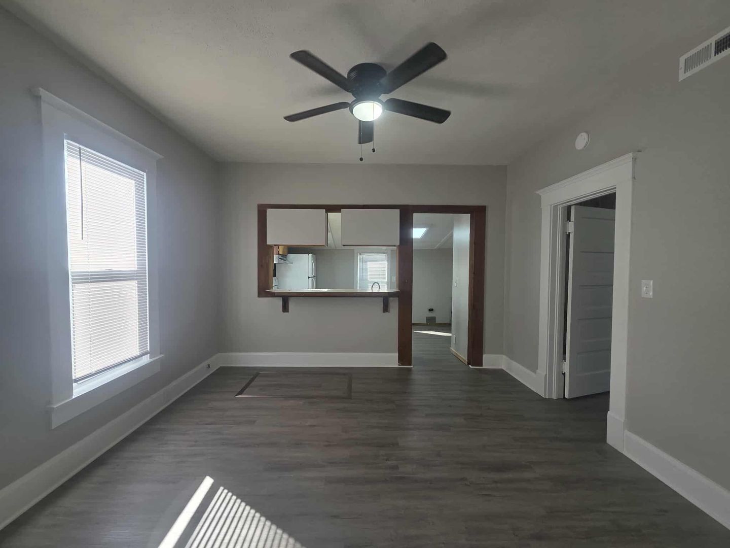 This home has been well maintained and a few upgrades have been added to include new lvp flooring and paint throughout. The front porch is spacious and a great place for afternoon sitting! The entrance of the home you are welcomed into a spacious open floor plan. The living room is open to the dining area or it can be counted as more living room space. The kitchen is spacious with an opening window to the dining room and houses the washer and dryer hookups. Plenty of windows throughout the home to add the natural light effect. There are 2 bedrooms with a shared Jack n Jill bathroom with access to lock from either side. There is a small back porch when entering the back yard. The back yard is spacious! Call us today for your showing!