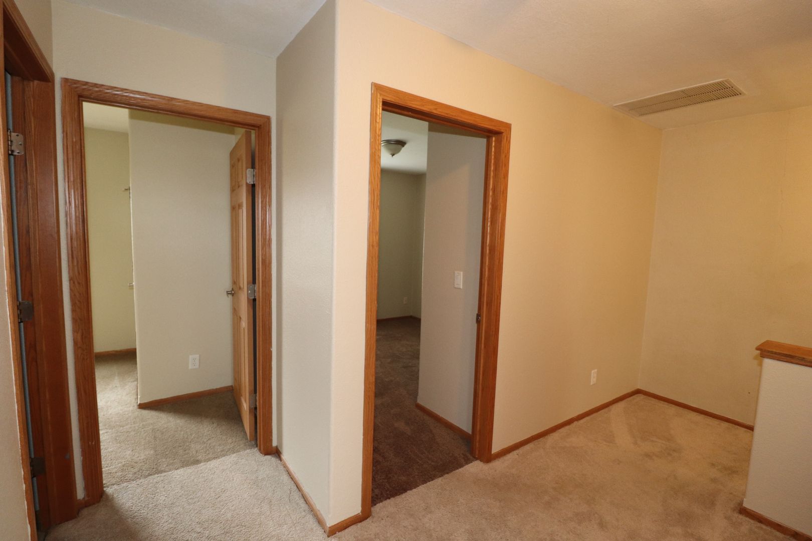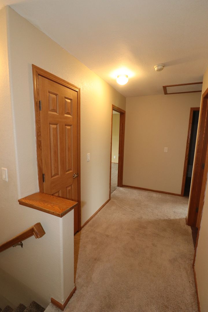 This unit is one part of a triplex and located at the end of a cul-de-sac! This unit has 4 bedrooms and 3.5 bathrooms. The entrance you will find stairs to take you to the second level of the home. The first level is a two car attached garage with a garage suite located in the back. What is a garage suite you ask? There is a 4th bedroom with access only through the garage with its own bathroom! Perfect for guests! The second level hosts a large living room with a peekaboo window to the kitchen. The living room has larger windows for lots of natural lighting. The kitchen is dressed with numerous cabinets and has a sliding door for access to the back deck and patio located below the deck. Also on this level you will find the laundry room and half bathroom. The third floor is where you will find the remaining living quarters. There are 2 spare rooms as well as a hall bathroom. The master is a larger room with dual closets and a master bath. Call us today for your showing! 1/2 OFF FIRST MONTHS RENT!!!!