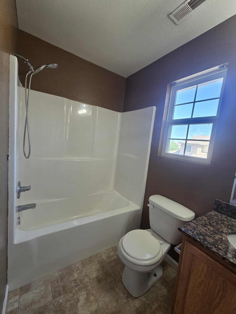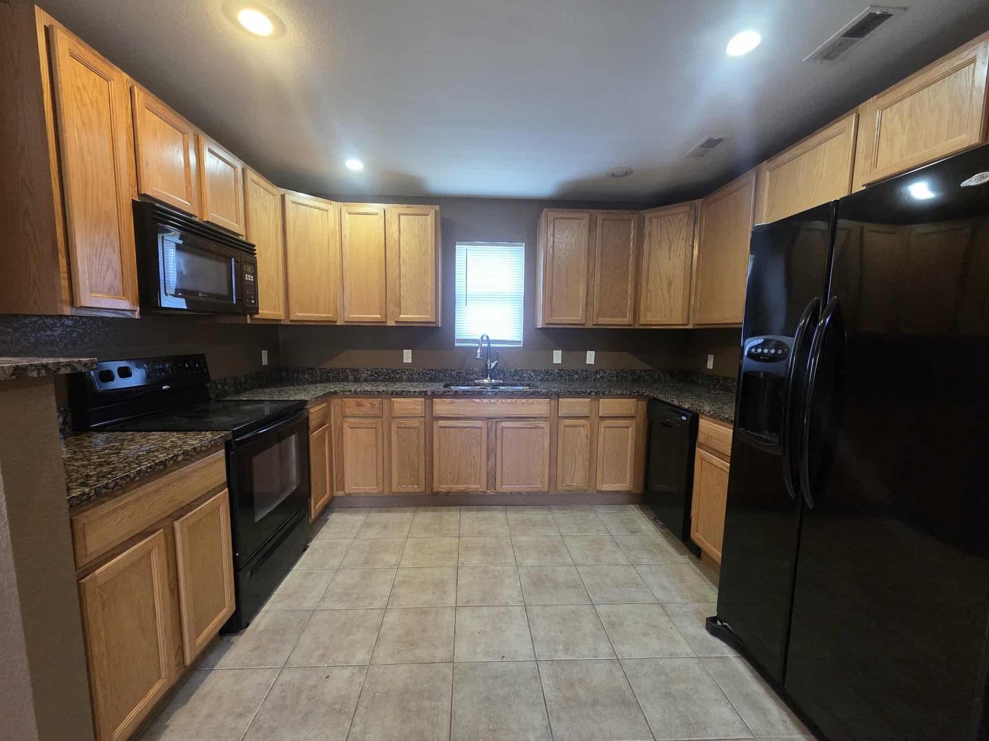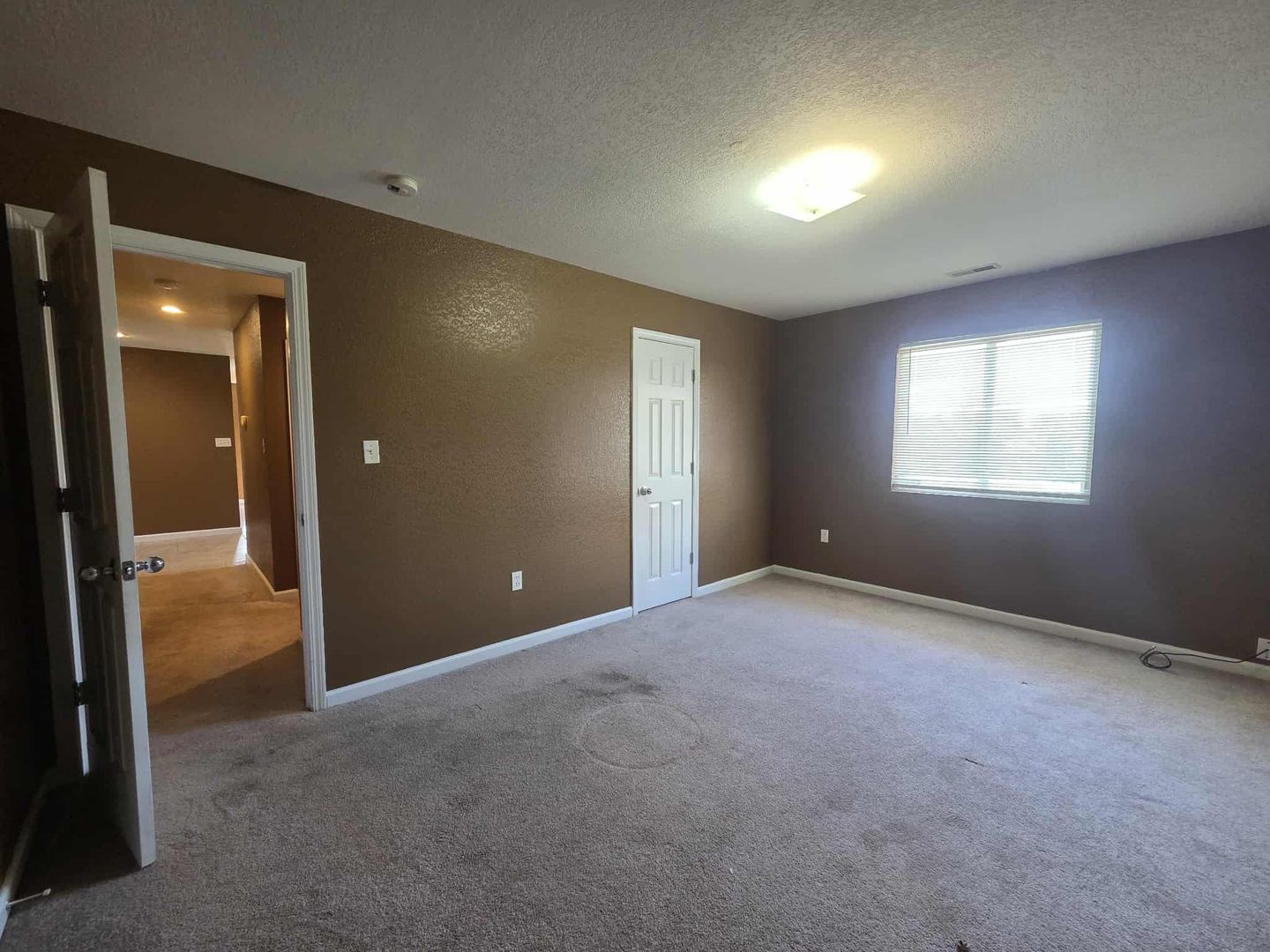 The main level also features a convenient bedroom, a ¾ bathroom, and a dedicated laundry area. Upstairs, you’ll find two additional bedrooms, a full hall bathroom, and a generously sized primary suite complete with its own private bathroom. The backyard is very large and shared as a community.